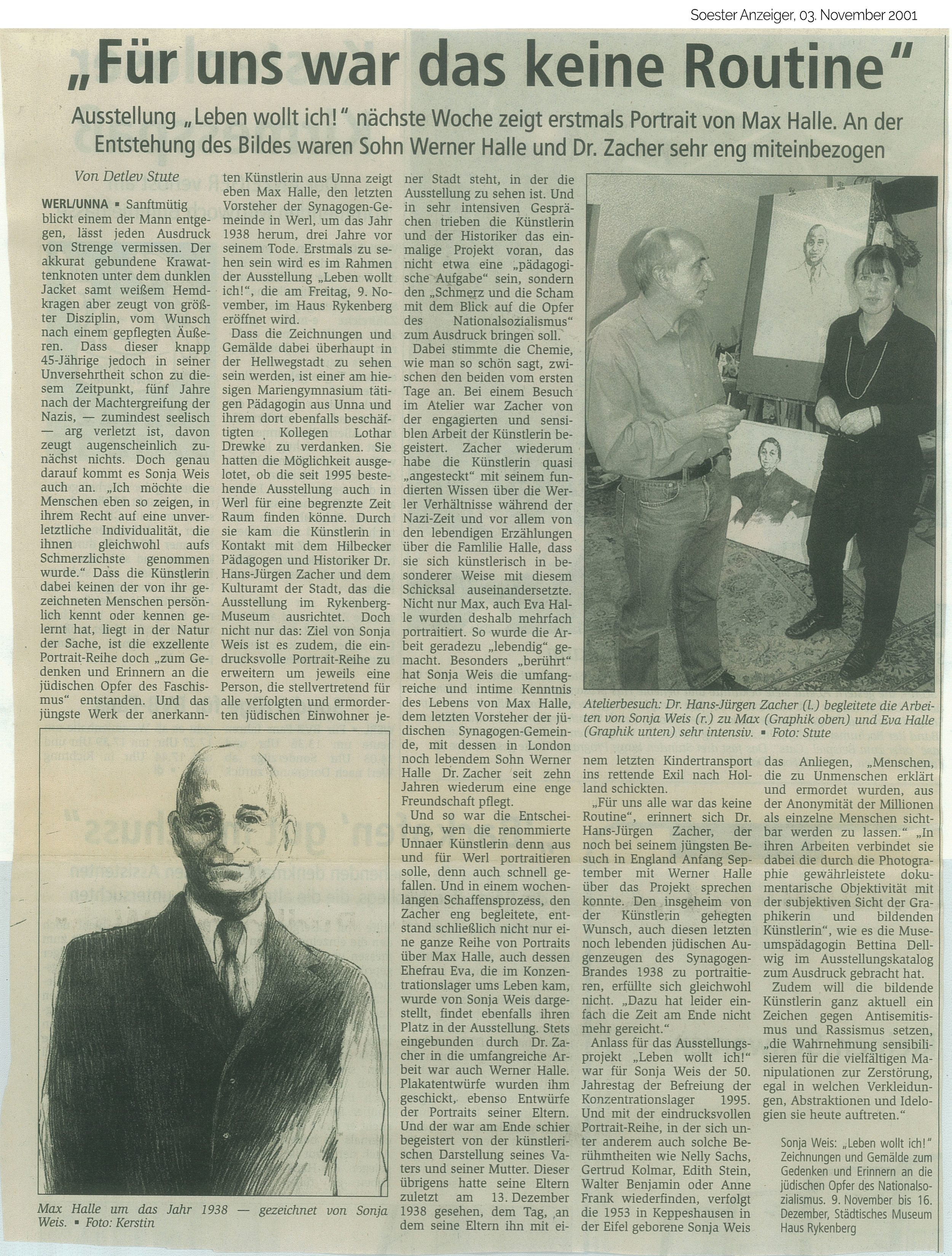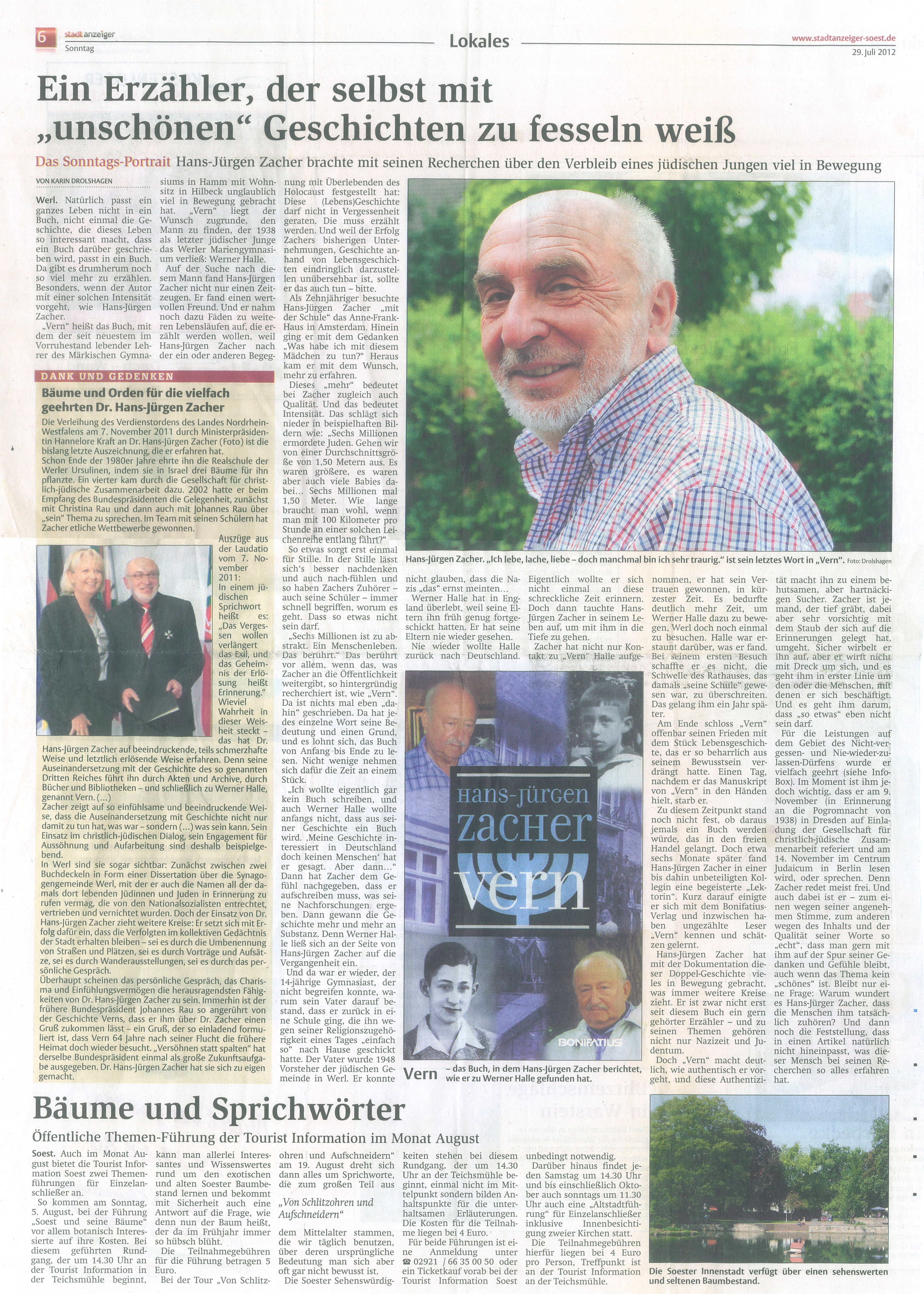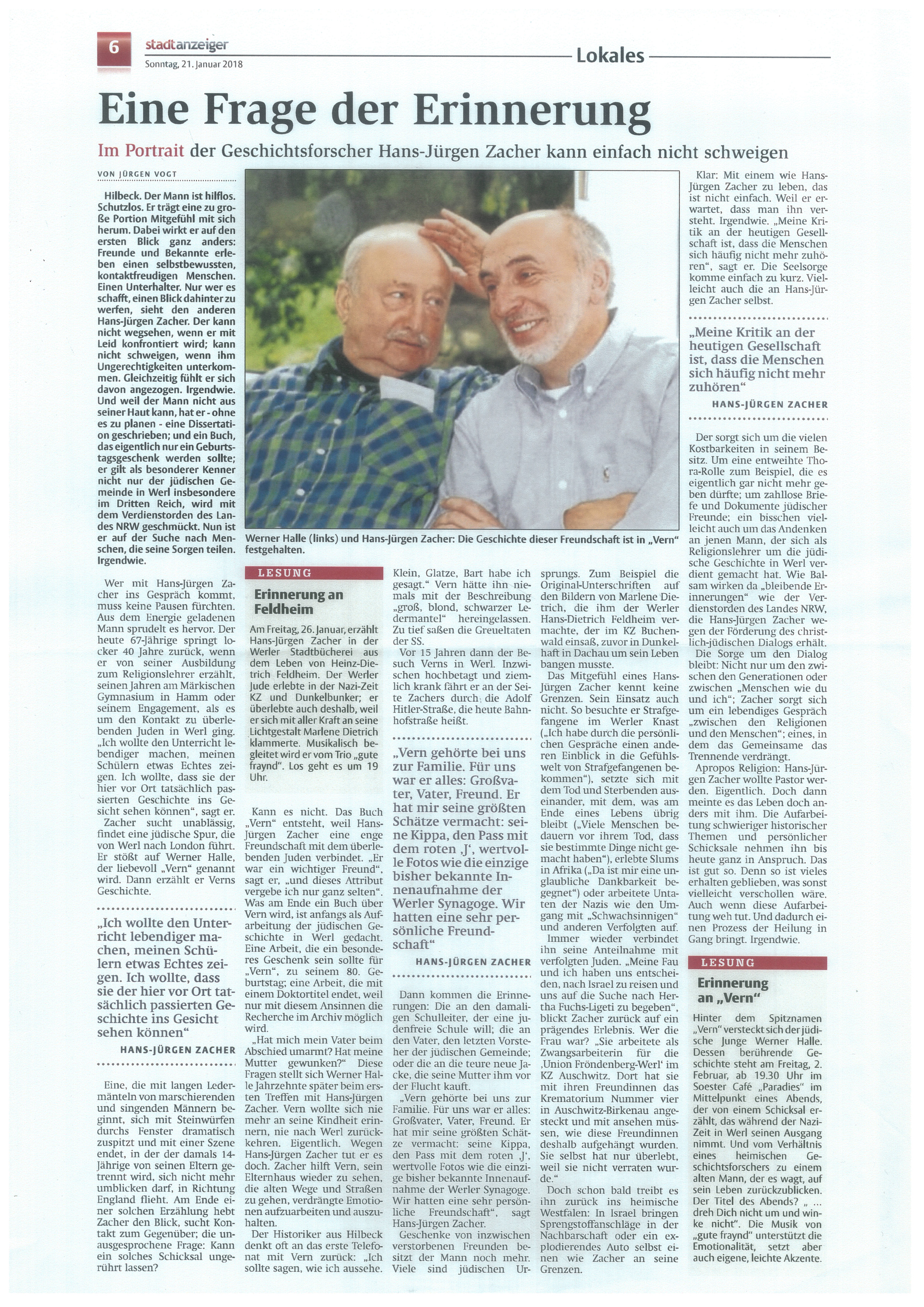 "Seit ca. 10 Jahren bin ich mit Hans-Jürgen Zacher befreundet. Uns verbindet beide eine Liebe zur jüdischen (Musik)Kultur und das Wissen um die Bedeutung deutscher Vergangenheits-Bewältigung. Aus diesem Grunde kam es schon viele Male zu gemeinsamen Musik-Lese-Projekten, bei denen Zacher meist seine Bücher vorstellte und ich musikalisch mit Klezmer, oder jüdischen Liedern ihn begleitete."
